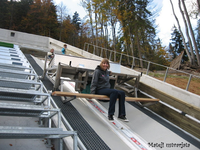Po koncu tekmovanja pa sem se podala še na vrh naše letalnice ter na vrh novih skakalnic. Seveda sem morala preizkusiti tudi zaletno rampo (ajej, sem se tresla).